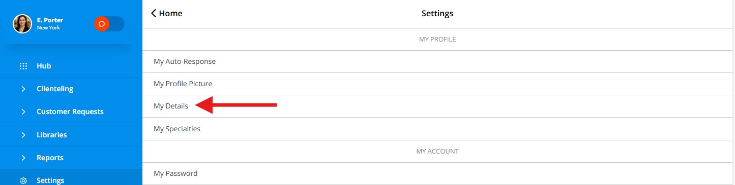 - On the Settings page, select My Details to apply any changes. Select Save Changes found near the bottom of the page for these changes to take effect on your Salesfloor account.