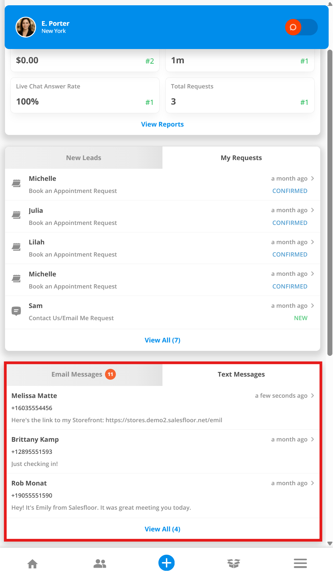 Just like all other Salesfloor communication channels (live chat, email, etc.), you will be able to