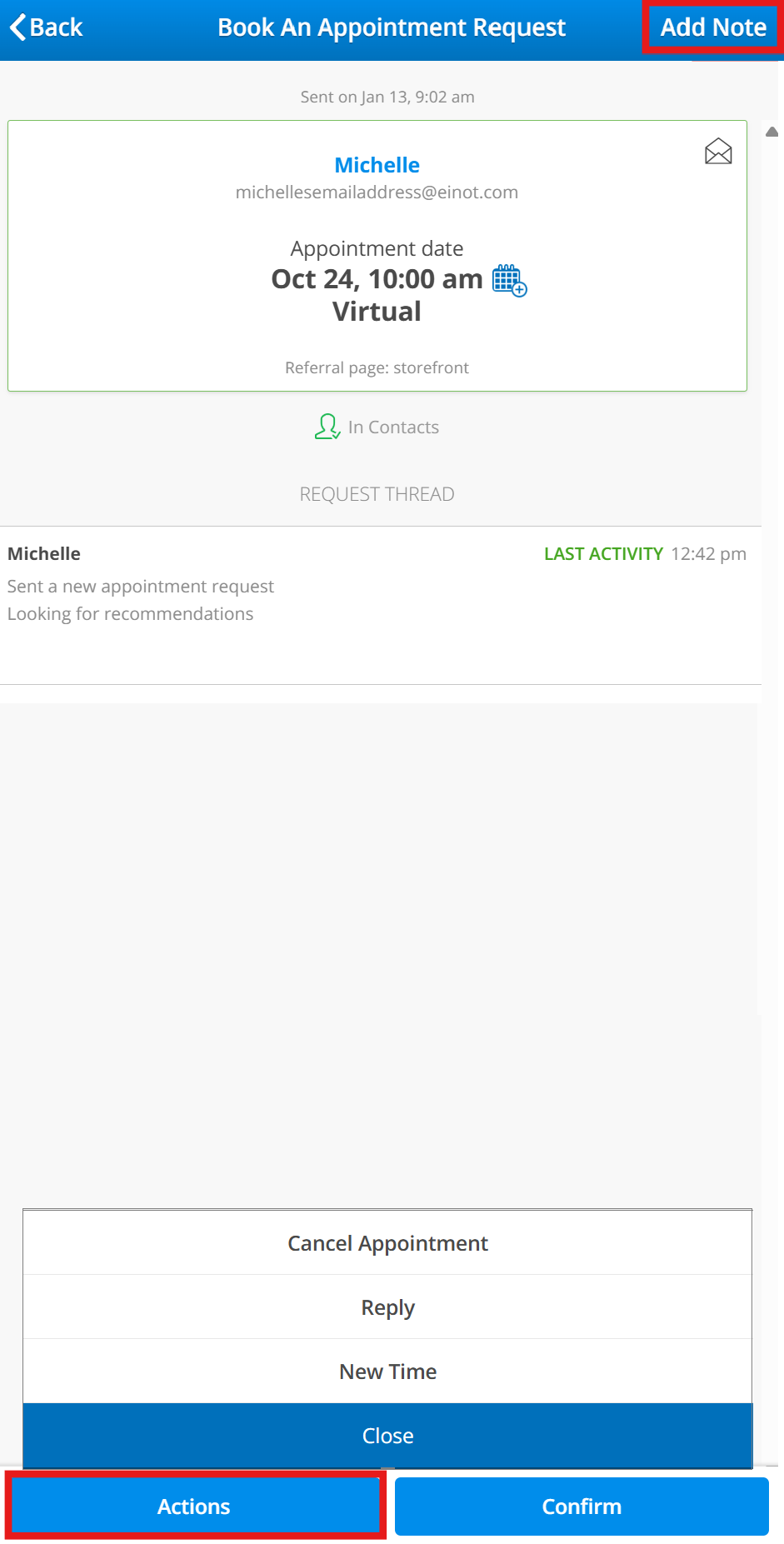- Add Note: use this to add any notes or reminders for yourself regarding this appointment