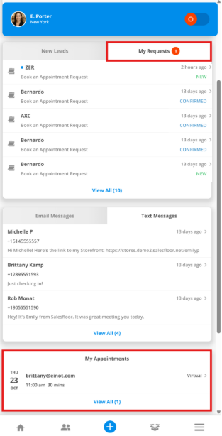 For customers who prefer a more personal touch with their virtual shopping experience, Salesfloor offers the Appointment Requests feature. Customers can create requests for a one-on-one appointment using the Connect widget or the Storefront of a chosen Associate.