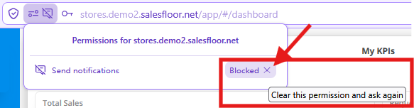 - Once you hover over "Blocked" you'll see Edge prompt you to "Clear this permission and ask again". Tap on the X to proceed: